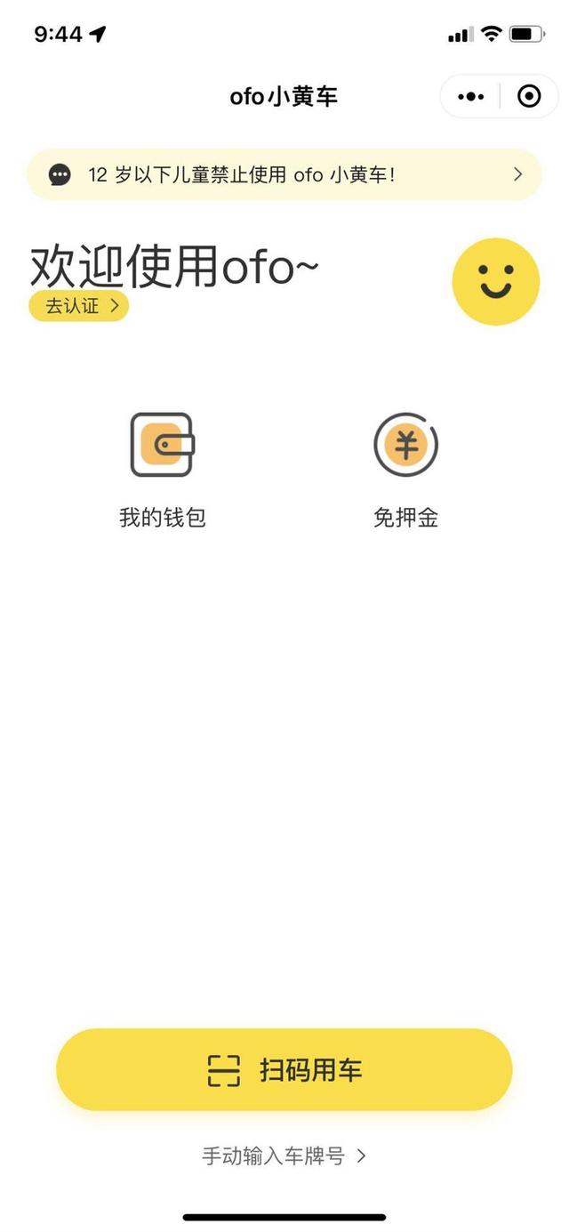 ofo小程序仍可打开但无法登录(微信小程序截图)