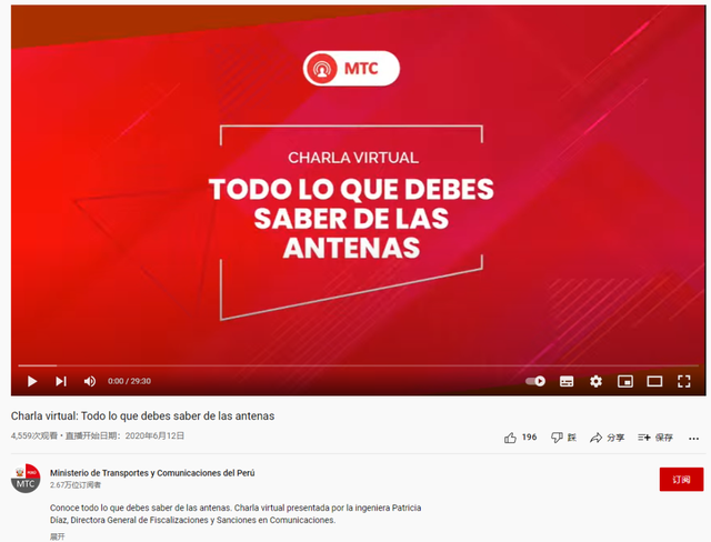 秘鲁运输和通信部“关于天线,你需要知道的一切”线上讲话。此外,秘鲁当地媒体RPP Noticias于2020年6月发布一篇题为《“神话足够了”:运输和通信部确认国内没有5G天线》的报道,报道援引运输和通信部消息称,“5G网络计划将于2021年或2022年年初实施。”