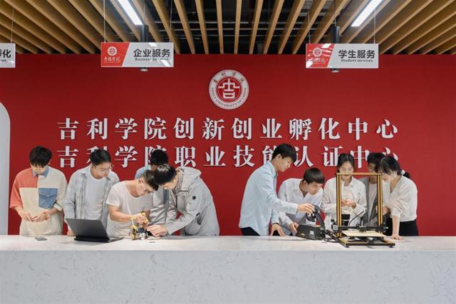 在具体推进与实施过程中,学校建立了学生、教学、团委、科研等部门齐抓共管的就业创业工作联动协调机制;建立了一站式学生创新创业孵化中心,成立“学生三创模拟总公司”,为学生提供全过程创业帮扶和指导;设置创新创业工作专项经费、学生创新创业奖学金;建成3000平米的三创孵化园,构建从培育、训练、实践进阶到孵化的全过程支持平台;开拓一批高质量校外双创实践基地,免费向学生开放并实现平台资源共享;继续深入实施创业就业“校企行”专项行动。目前,学校已为7000多名在校生提供创业指导和创业孵化服务,2022年吉利学子共创办企业21家,通过创业实现了高质量就业。