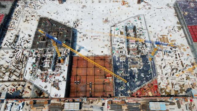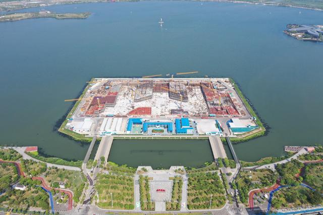 8月30日,上海临港新片区在建最高标志性建筑西岛金融中心项目南北塔楼主体正式冲出地平线。