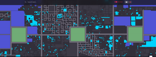 Decentraland地图(蓝色标记为正在售卖)图片来源:Decentraland官网