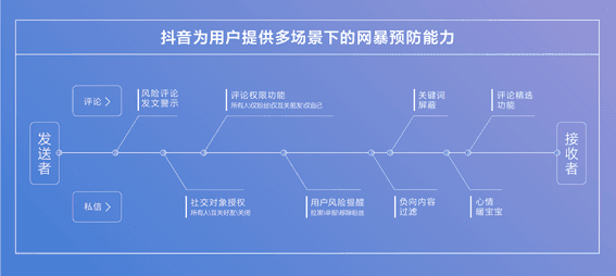 抖音在2月推出的国内首个“多场景预防网暴服务”,除了包含将用户“隔离”在暴力之外的“评论权限设置”、“关键词屏蔽”、“评论精选”,还包含了“发文预警”功能。