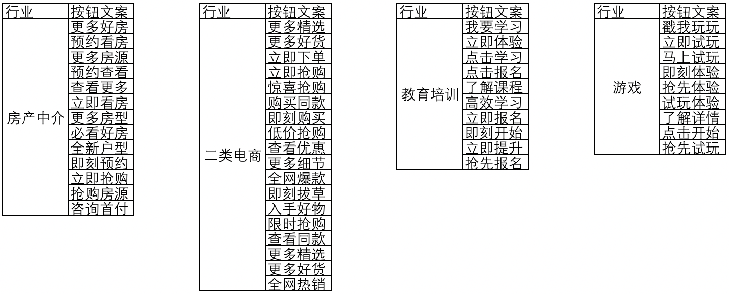 3、按钮文案:前期根据创意内容及行业特色自动适配,后期可支持客户在投放平台自选文案