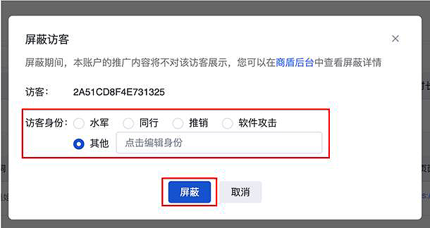 D. 点击【屏蔽】,即可屏蔽该访客