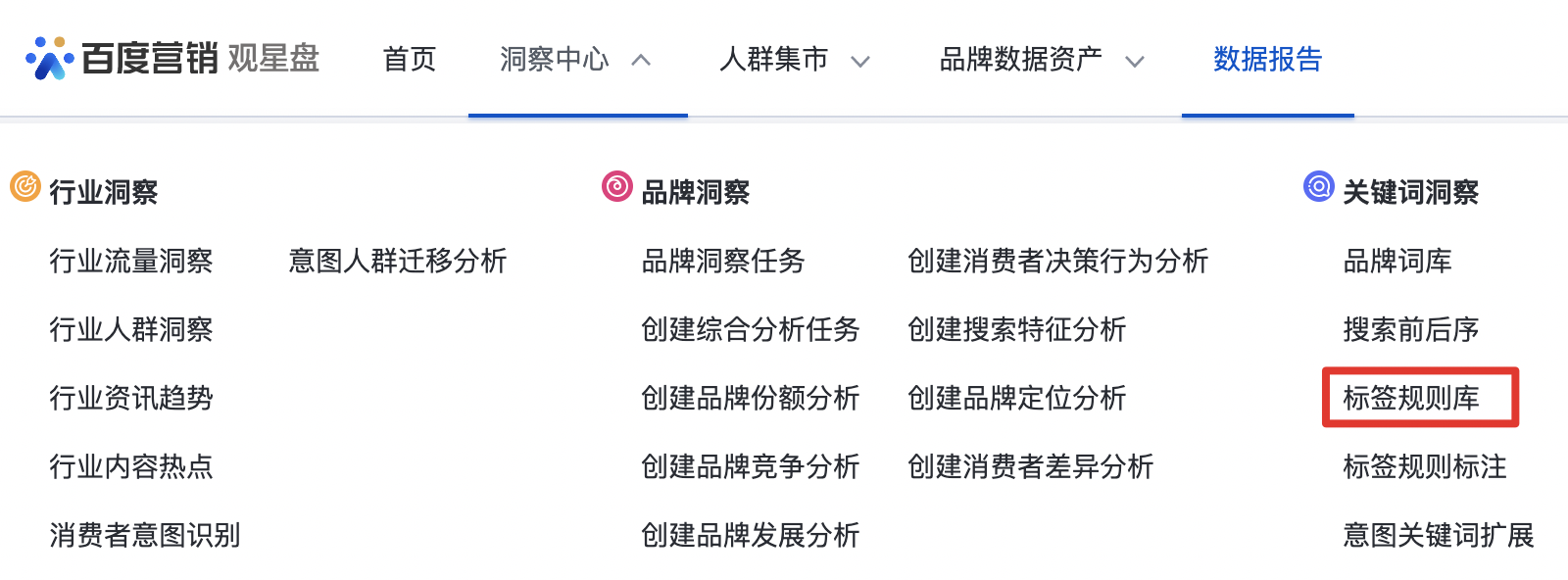 a) 入口:洞察中心-关键词洞察-标签规则标注