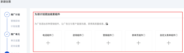 1.下线新建页“添加线索组件”入口(您可在列表-创意组件中管理线索组件)