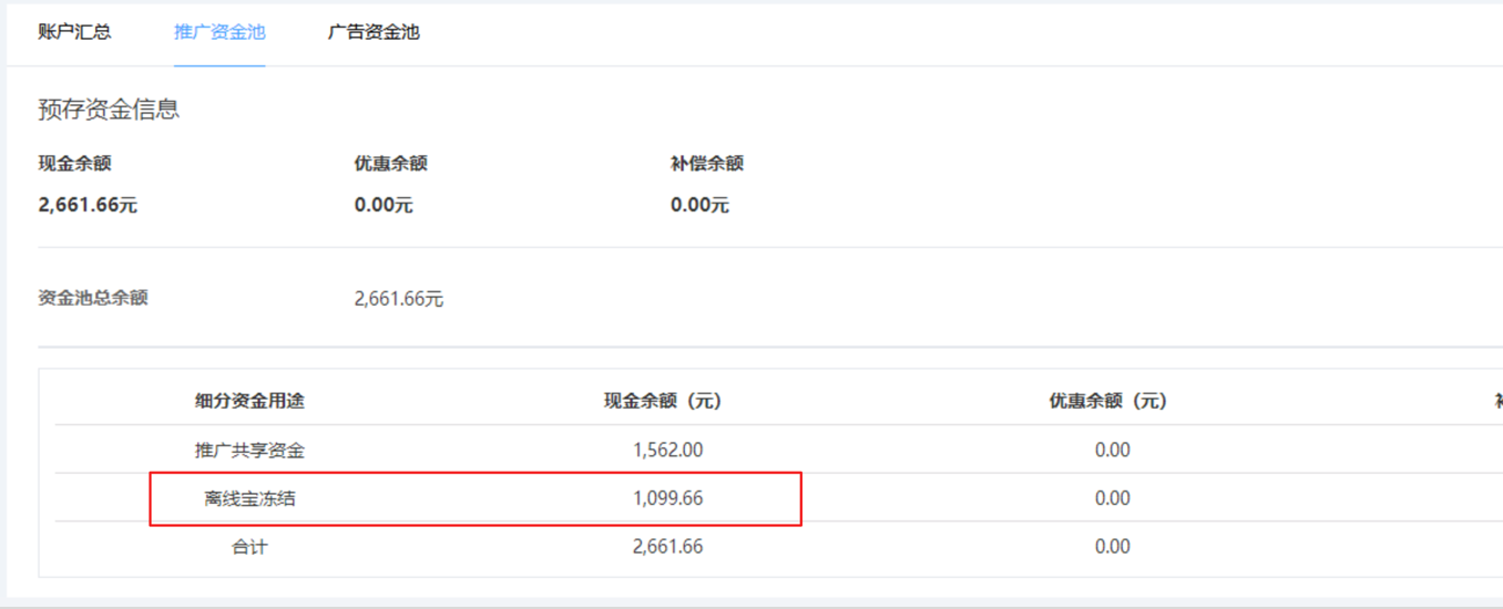 示例图2:推广资金池-离线宝冻结-查看具体余额,点击跳转