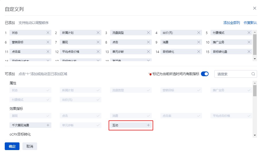2. 数据查看:在[推广管理]数据报表及[数据报告]中,可查看“互动”数据,互动=点击次数+有效播放次数。互动是指用户对广告的交互操作,对视频广告,互动行为包含点击互动和有效播放互动,对其它格式的广告(如:图片)互动依然仅包含点击。