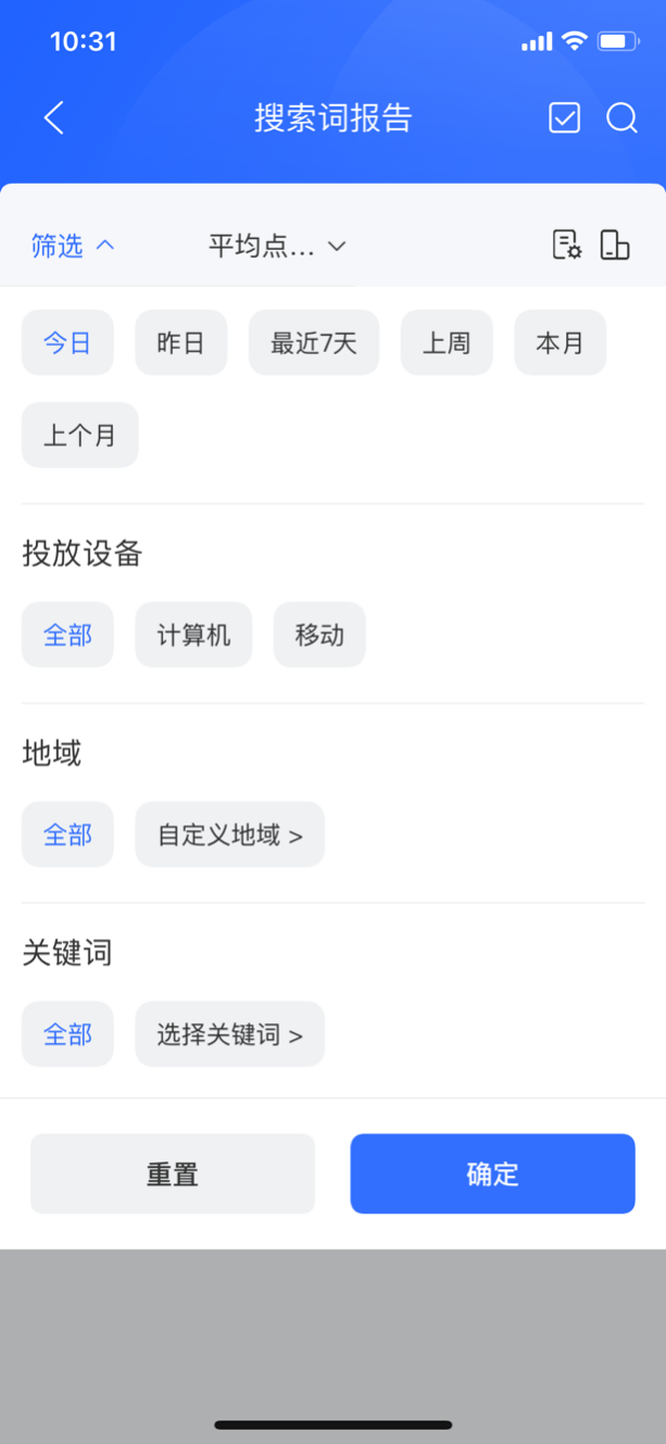 ①支持筛选:可通过:日期、投放设备、地域、关键词、添加状态、购买方式等不同维度进行筛选搜索词。