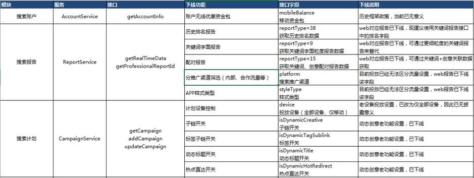 百度营销API下线内容