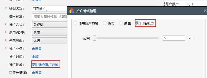 第三步:设置推广地域,新增商圈和门店周边