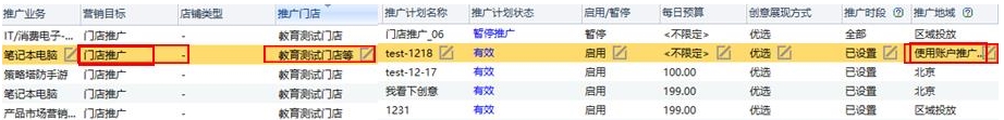 - 计划层级-编辑门店计划:可在列表区和编辑区查看、编辑推广地域、推广门店;列表区营销目标一列可查看、筛选“门店计列表区