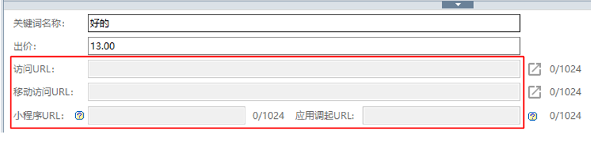 关键词层级:无需填写访问url、移动访问url、小程序url、应用调起url