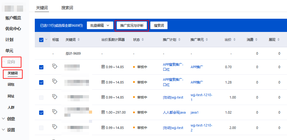 原 “推广实况”与“展现诊断”工具进行合并,升级为全新“推广实况与诊断”工具。
