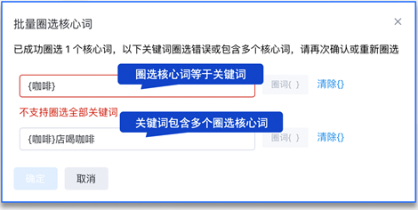 批量圈选核心词的二次确认场景