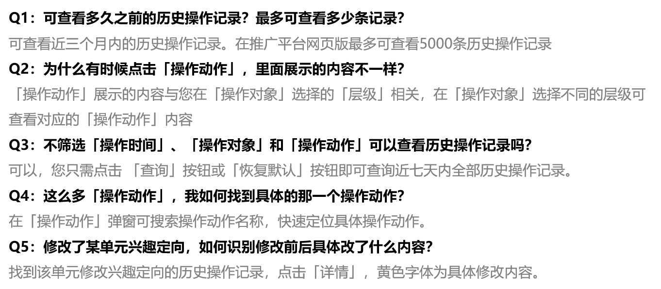 但目前投放平台的历史操作记录功能,无论从易用性还是交互规范上都存在较大问题,如查询范围难筛选、记录报表难看懂、交互体验待优化、接入流程不规范等。上述问题给客户使用带来较大困扰,急需针对页面交互和用户体验进行升级。
