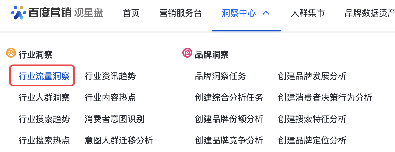 观星盘洞察中心,上线行业流量洞察和行业人群洞察,帮您洞察行业流量情况;上线品牌定位,帮您洞察您与竞品之间的竞争关系。