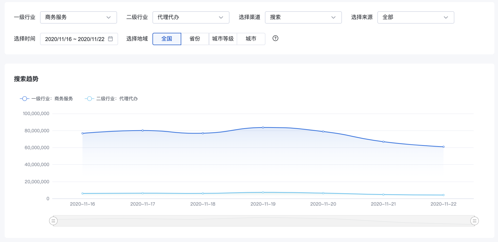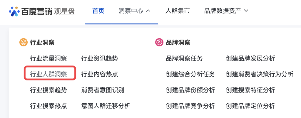 1、行业流量洞察:从行业搜索数据和行业人群的维度,洞察整个行业的流量情况,包含行业流量洞察和行业人群洞察2大功能。