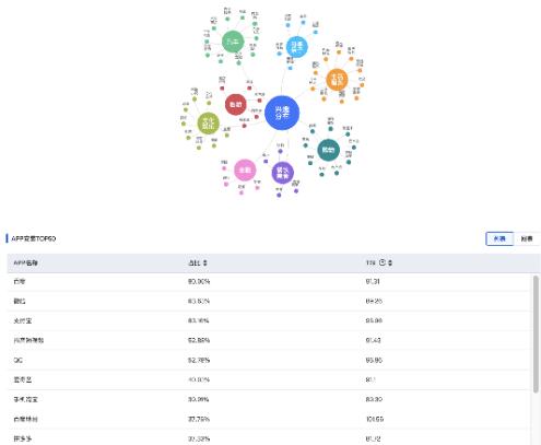 2、品牌定位分析:从消费者的多品牌信息了解行为(搜索/阅读/观影等)中,提取品牌关系数据,展现所选主品牌与竞品相似度/竞争关系。