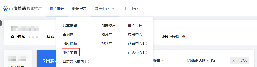 2.CPC出价策略(排名倾向、点击最大化)支持计划层级,可在资产中心-出价策略进行编辑