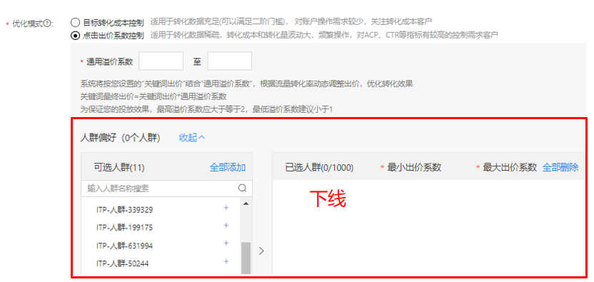 - 下线点击出价系数控制下的“人群偏好”入口,迁移至新建人群主流程。