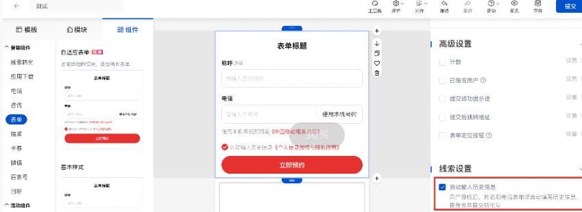 1、表单设置入口:营销服务-基木鱼-营销组件-表单