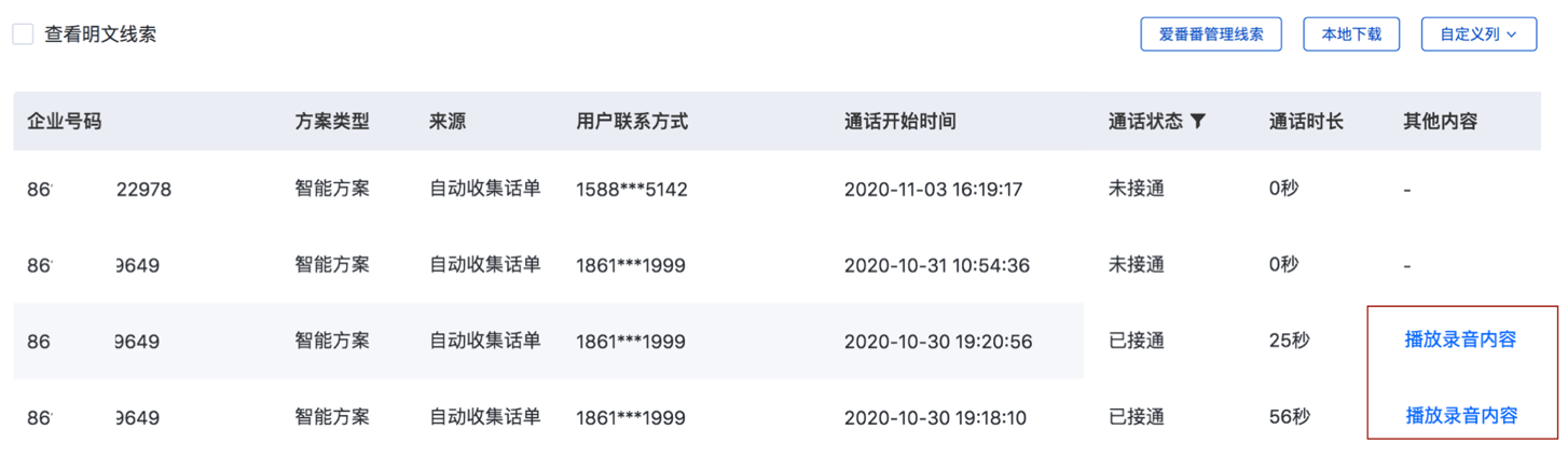 为保证客户可以更准确的把握每条电话线索情况,除披露电话基础数据外,现开放录音功能,开启此功能后可获取电话沟通内容,方便客户更好的明确网民需求并跟进,促成转化。