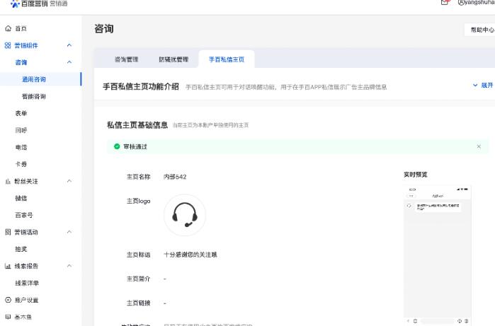 设置入口:营销通-咨询-通用咨询-手百私信主页