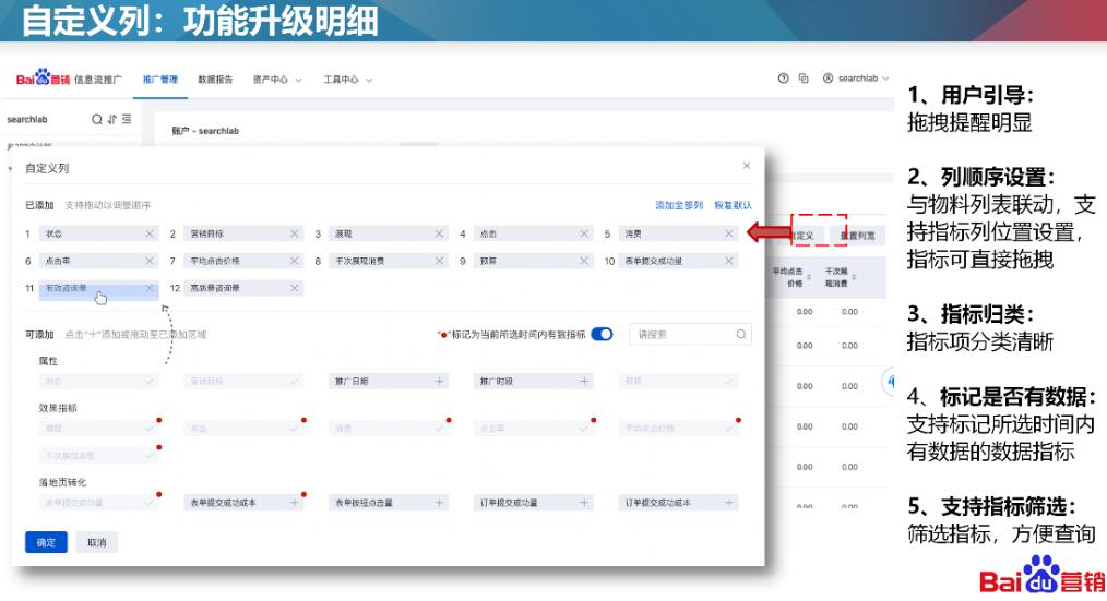 物料列表承载了广告主新建推广任务、编辑任务、查看数据指标的重要功能,是整个平台使用最多且客户最关注的区域。目前客户日常使用中,存在二个重要使用场景无法满足: