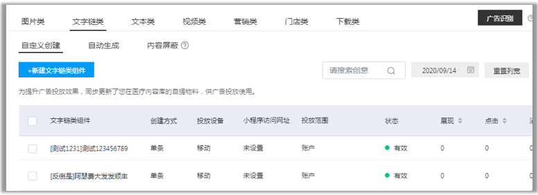 3、投放端入口:搜索推广-创意-创意组件-文字链-短文字链