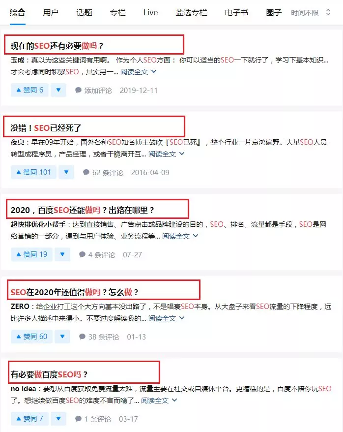 否则这几年,在知乎上关于SEO还能不能做的讨论,也不会这么激烈了。